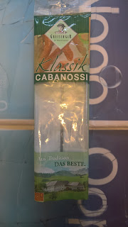 The ones illustrated left came from Waitrose, £2.69 for five of them, not the brand they used to offer, but they did claim to be made of pig (rather than the chicken one gets occasionally) and not to involve cheese (which one also gets occasionally). But once home, I realised I had not read the labels very carefully and they turned out to be Austrian rather than Polish. Dry and chewy, with rather a sharp flavour, rather than soft and pink with a touch of caraway. In fact, not very good at all, not 'Das Beste' at all. A brand which I shall endeavour to avoid in the future.