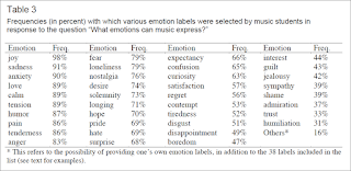 The table above addresses the ‘what emotions’ question and was compiled from the responses to a survey of 135 music students, 69 men and 66 women, mostly in their twenties and who came from four different music conservatories in three European countries. Mostly, but by no means all, students of the western classical tradition. An impression of what a sample of musical others think what music can do. A survey which was reported in 2003 at reference 1.